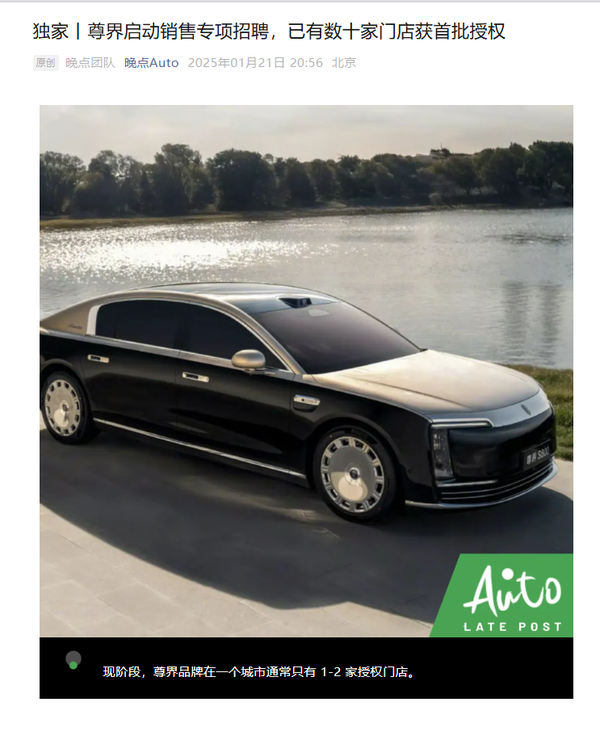 曝已稀有十家门店赢得尊界销售授权 授朱门槛极高 ]article_adlist-->尊界品牌对授朱门店的要求颇高,需筹办鸿蒙智行用户中心且门店面积跳动8000平素米,欢跃基础条目后还需赢得省车业务认真东说念主的保举。当今,已稀有十家门店赢得首批授权,频繁一个城市只消1-2家门店能获此盛誉。尊界S800上市后,鸿蒙智行门店将为其轨则单独展位,销售和委用团队也将是尊界专属东说念主员,以营造访佛疾驰迈巴赫的豪华感。